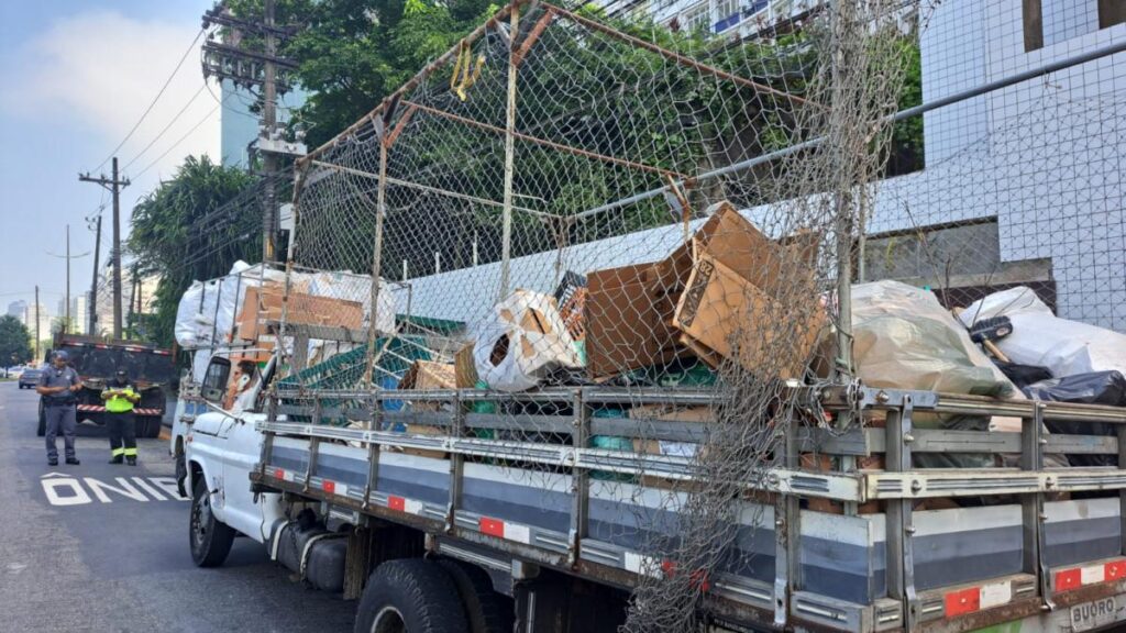 Com o objetivo de fiscalizar caminhões que coletam resíduos da construção civil e recicláveis, uma força-tarefa foi realizada nesta terça-feira (30) na Avenida Presidente Wilson (José Menino), nas proximidades da divisa entre Santos e São Vicente. Na ação, foram abordados 19 veículos, resultando em dez intimações e lavrados cinco autos por infração ambiental.