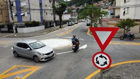Novas minirrotatórias de trânsito são instaladas em bairro de Santos