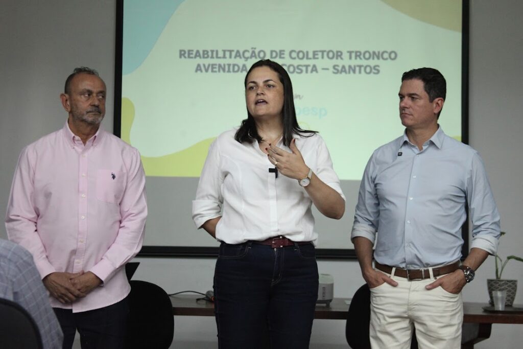 Para as obras, a Sabesp utilizará moderna tecnologia, inserindo a nova tubulação dentro da rede já existente. Isso já foi feito em recente obra na Rua Goiás, técnica que evita grandes escavações, minimiza os impactos no sistema viário e não altera o fluxo da coleta dos esgotos dos imóveis locais. “As intervenções garantirão melhorias no funcionamento das instalações que coletam os esgotos dos imóveis da zona leste, reforçando a eficiência na operação do sistema de esgotamento sanitário”, destacou Olívia Mendonça, diretora regional da Sabesp na Baixada Santista e Vale do Ribeira, em entrevista coletiva que contou com a participação de Fabrício Cardoso, titular da Secretaria de Infraestrutura e Serviços Públicos, e Flávio de Brito Jr., diretor de Operações da CET.
